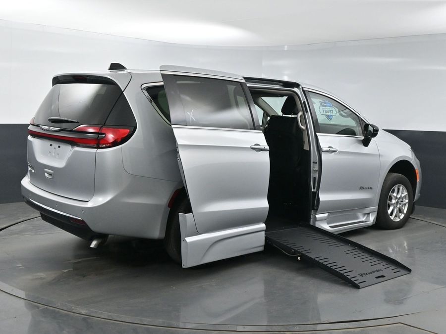 Wheelchair accessible conversion for ingress/egress with maximum door opening and interior head height. Modification includes: Lowered floor from front firewall to rear bench, power side entry bi-fold ramp, rear passenger kneeling system, remote access.