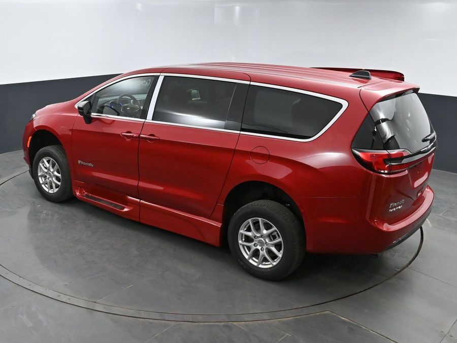 Wheelchair accessible conversion for ingress/egress with maximum door opening and interior head height. Modification includes: Lowered floor from front firewall to rear bench, power side entry bi-fold ramp, rear passenger kneeling system, remote access.