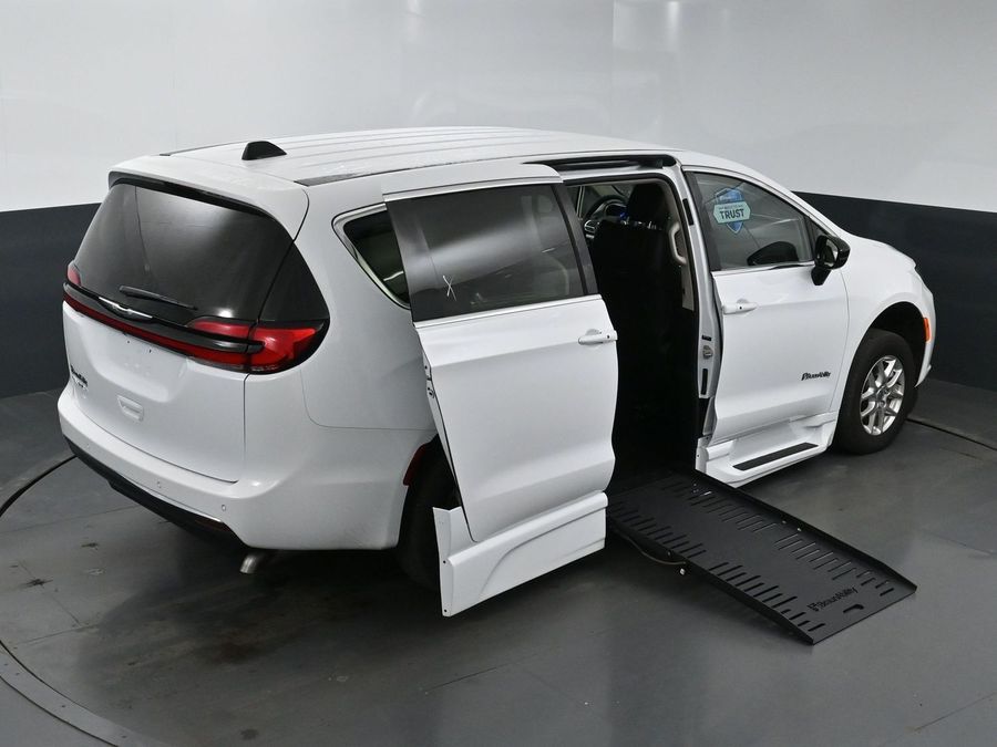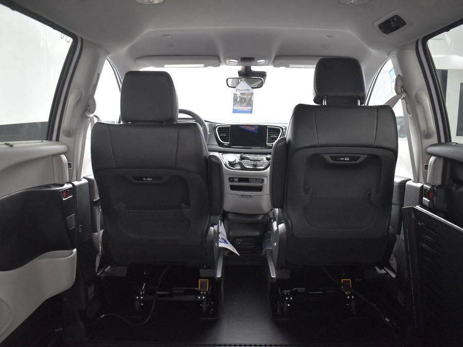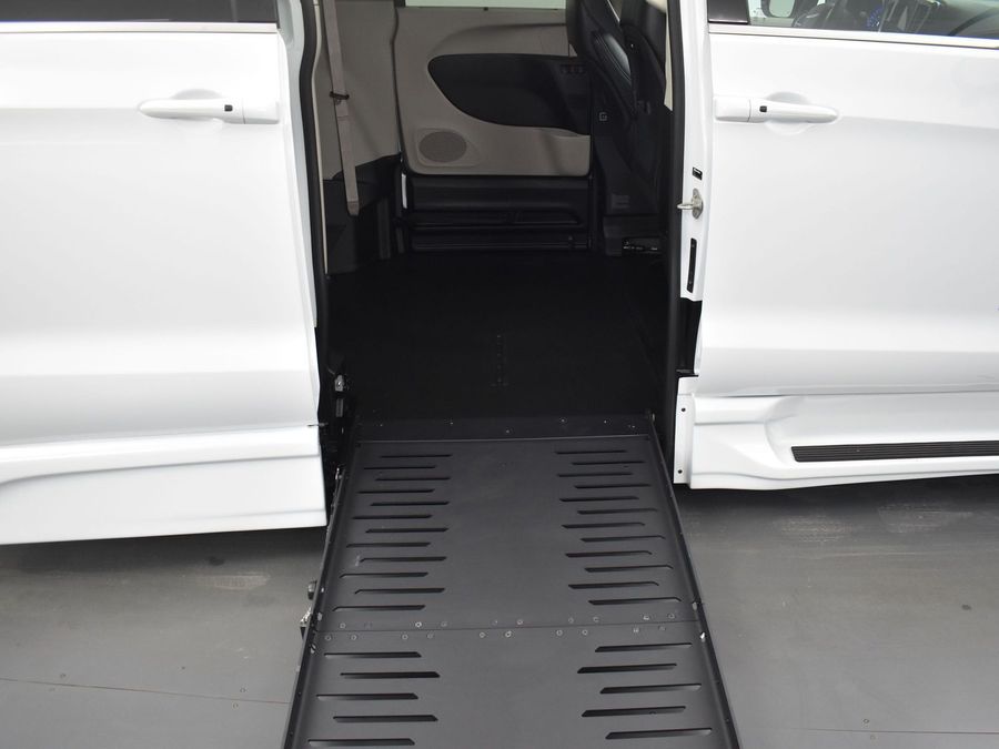 Wheelchair accessible conversion for ingress/egress with maximum door opening and interior head height. Modification includes: Lowered floor from front firewall to rear bench, power side entry bi-fold ramp, rear passenger kneeling system, remote access.