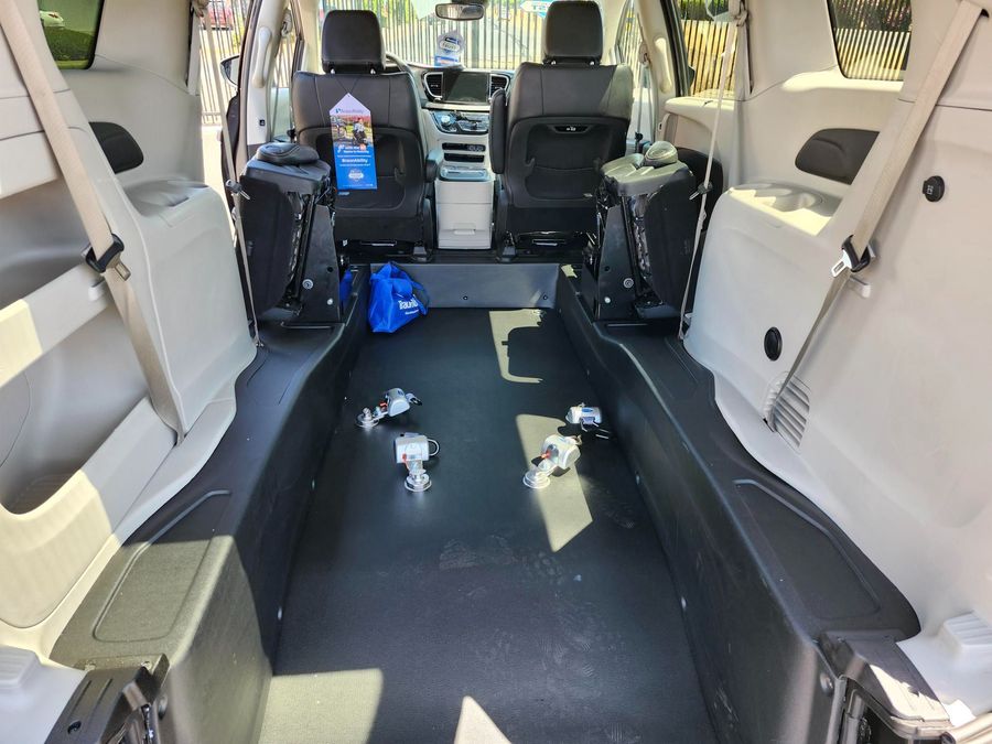 Wheelchair accessible conversion which includes: center channel lowered floor from behind front seating to rear hatch area, manual bi-fold spring loaded ramp, OEM style interior and 4-point wheelchair tie down system with OEM second row seating.