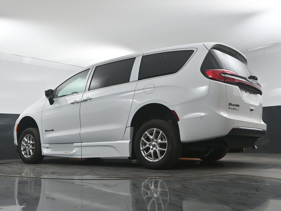 Wheelchair accessible conversion for ingress/egress with maximum door opening and interior head height. Modification includes: Lowered floor from front firewall to rear bench, power side entry bi-fold ramp, rear passenger kneeling system, remote access.