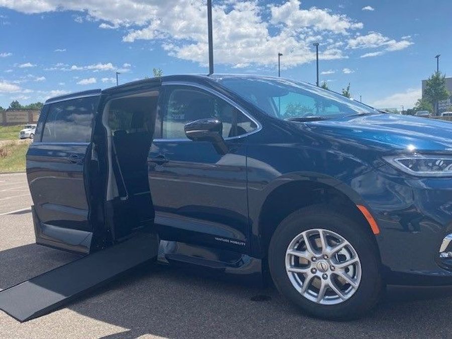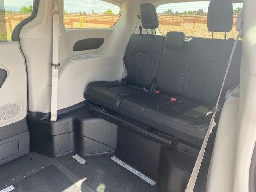Wheelchair accessible conversion for ingress/egress which includes: Lowered floor from front firewall to rear bench, side entry in-floor power ramp, rear passenger kneeling system, remote access to operate power sliding door/ramp/kneeling functions,