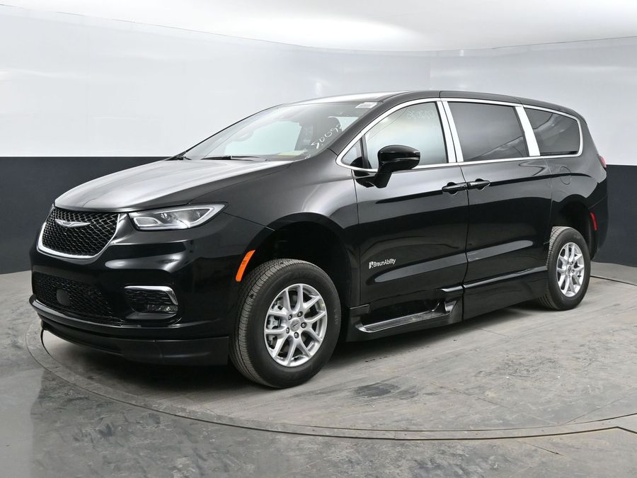 Wheelchair accessible conversion for ingress/egress with maximum door opening and interior head height. Modification includes: Lowered floor from front firewall to rear bench, power side entry bi-fold ramp, rear passenger kneeling system, remote access.