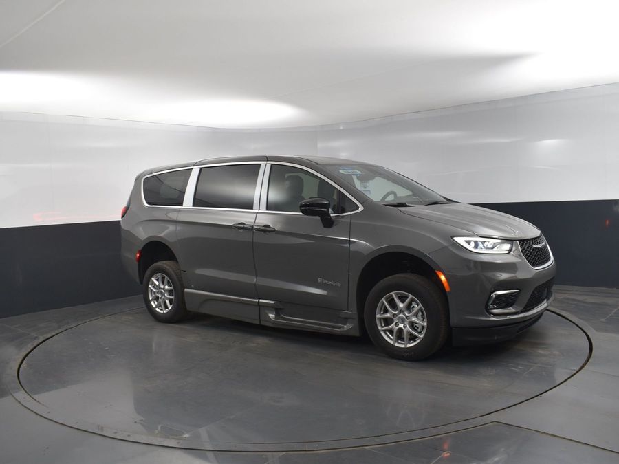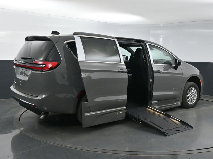 Wheelchair accessible conversion for ingress/egress with maximum door opening and interior head height. Modification includes: Lowered floor from front firewall to rear bench, power side entry bi-fold ramp, rear passenger kneeling system, remote access.