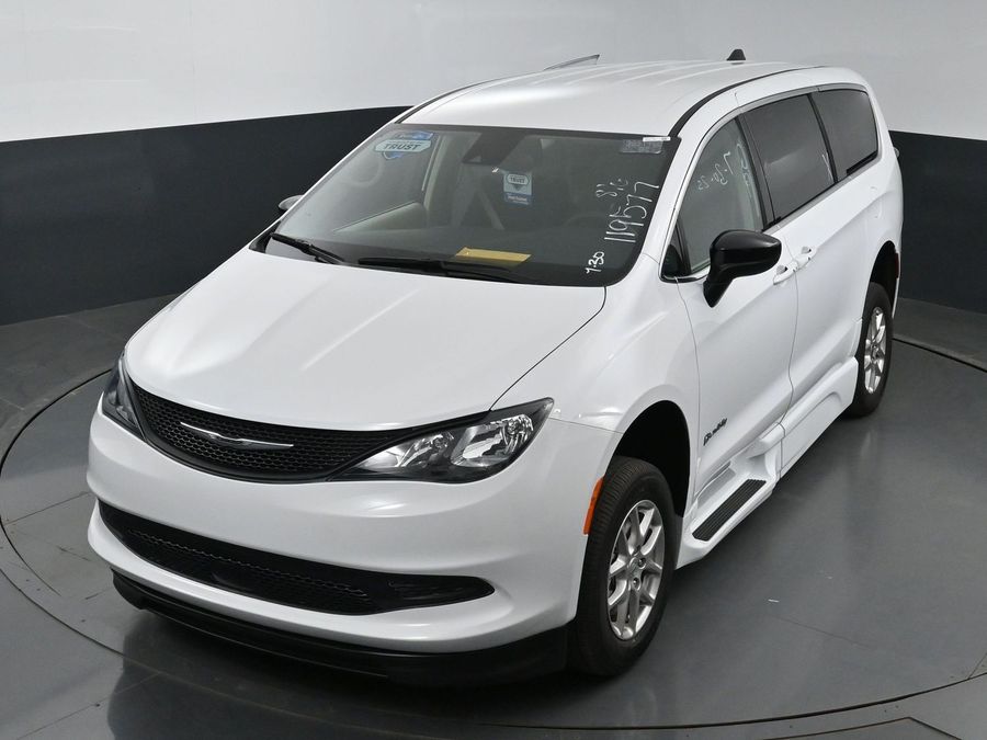 Wheelchair accessible conversion for ingress/egress with maximum door opening and interior head height. Modification includes: Lowered floor from front firewall to rear bench, mechanical side entry bi-fold ramp, rear passenger kneeling system, remote acce