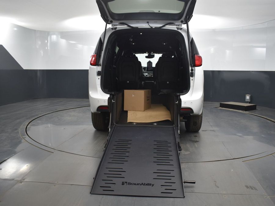Wheelchair accessible conversion which includes: center channel lowered floor from behind front seating to rear hatch area, manual bi-fold spring loaded ramp, OEM style interior and 4-point wheelchair tie down system with OEM second row seating.