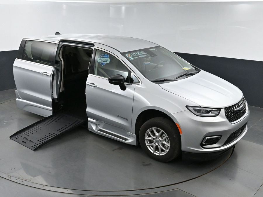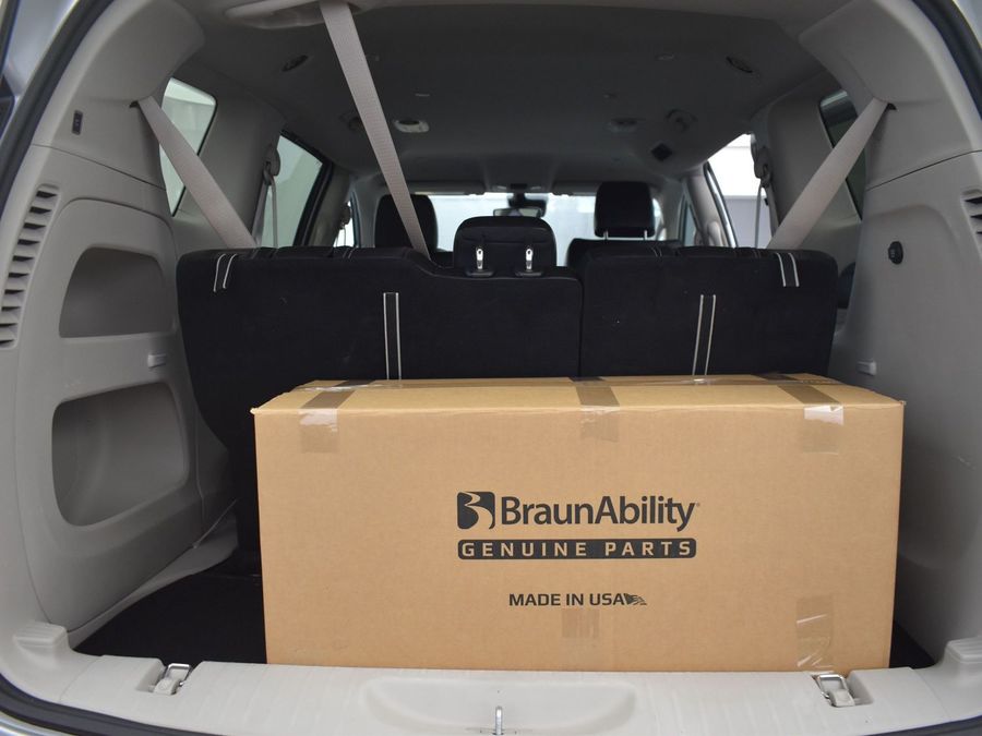 Wheelchair accessible conversion for ingress/egress with maximum door opening and interior head height. Modification includes: Lowered floor from front firewall to rear bench, power side entry bi-fold ramp, rear passenger kneeling system, remote access.