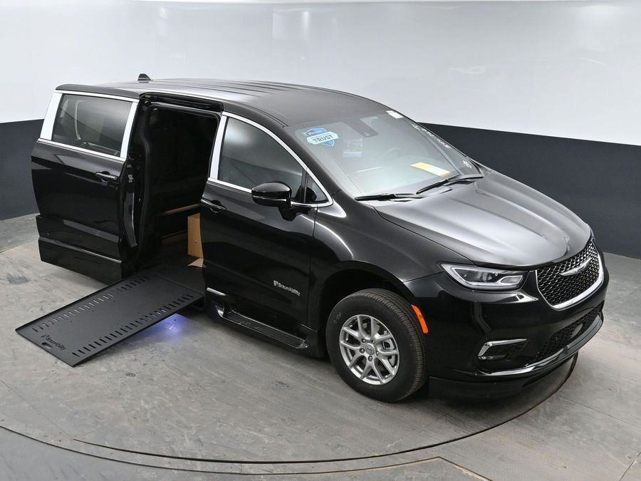 Wheelchair accessible conversion for ingress/egress which includes: Lowered floor from front firewall to rear bench, power side entry in-floor ramp, rear passenger kneeling system, remote access to operate power sliding door/ramp/kneeling functions,