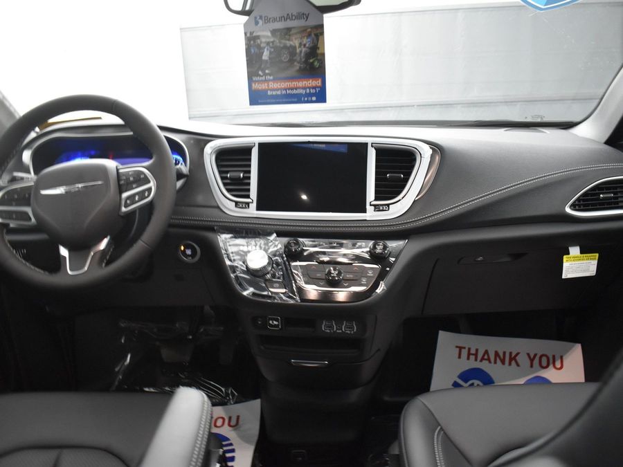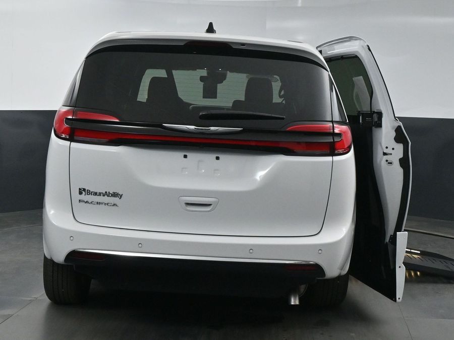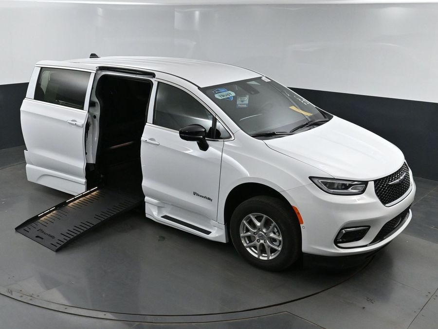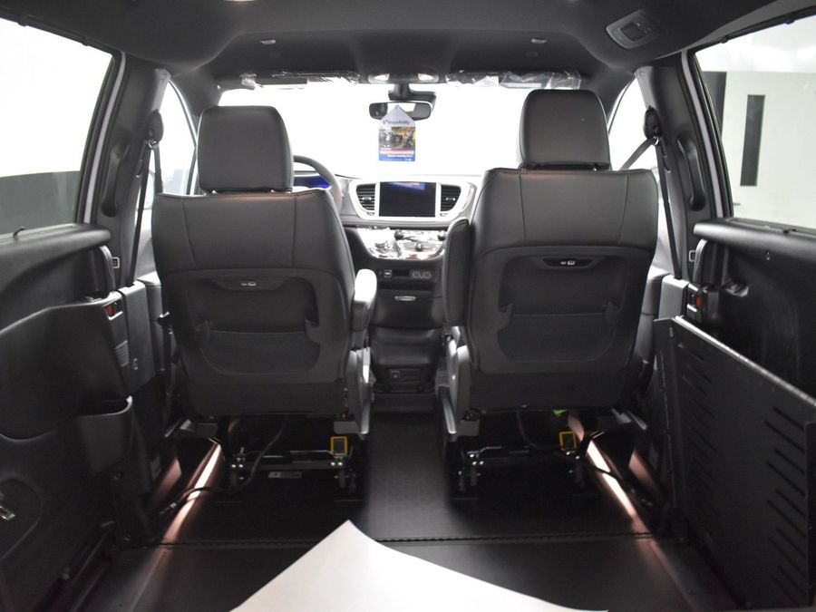 Wheelchair accessible conversion for ingress/egress with maximum door opening and interior head height. Modification includes: Lowered floor from front firewall to rear bench, power side entry bi-fold ramp, rear passenger kneeling system, remote access.