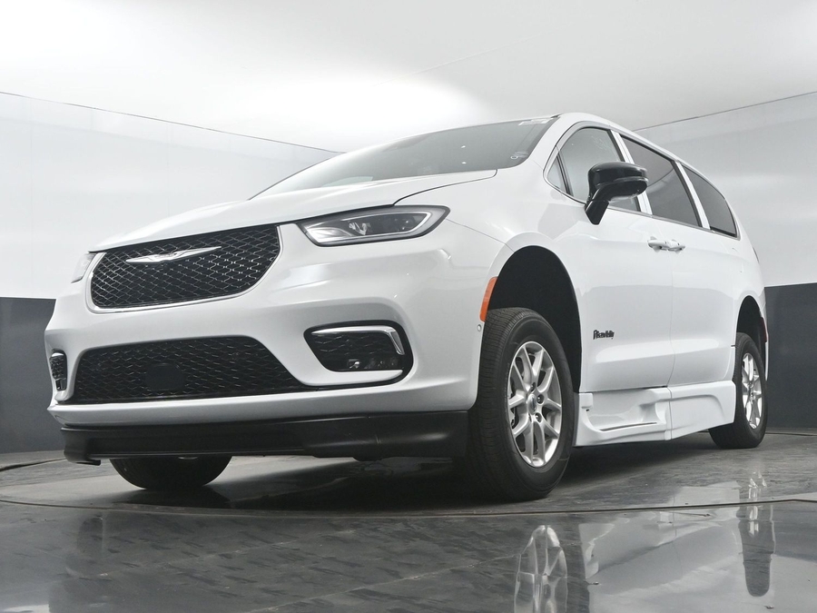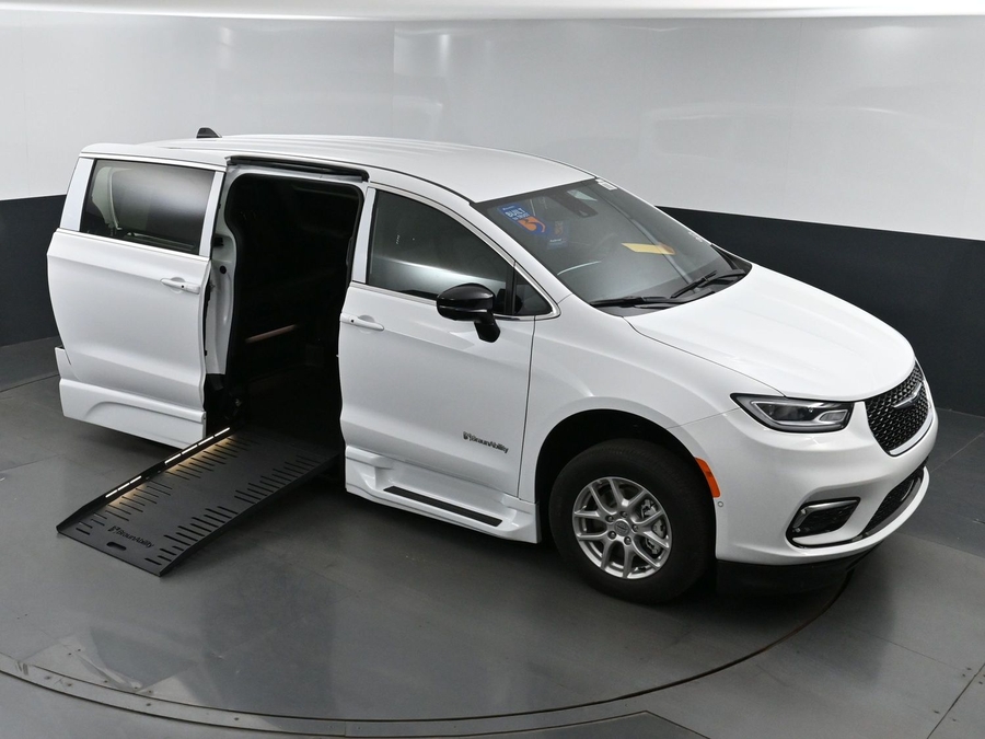 Wheelchair accessible conversion for ingress/egress with maximum door opening and interior head height. Modification includes: Lowered floor from front firewall to rear bench, power side entry bi-fold ramp, rear passenger kneeling system, remote access.