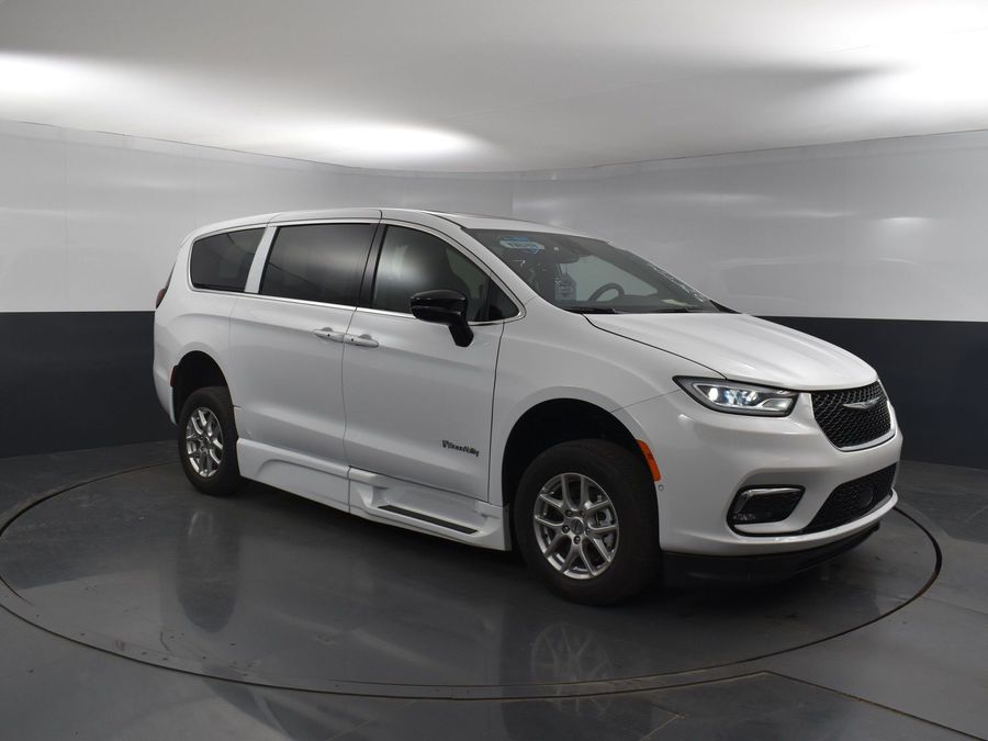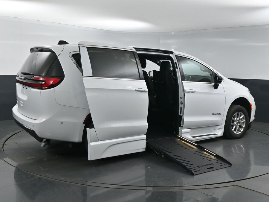 Wheelchair accessible conversion for ingress/egress with maximum door opening and interior head height. Modification includes: Lowered floor from front firewall to rear bench, power side entry bi-fold ramp, rear passenger kneeling system, remote access.