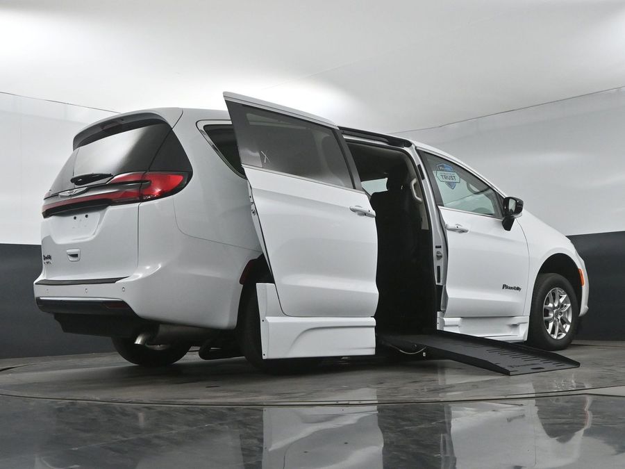 Wheelchair accessible conversion for ingress/egress with maximum door opening and interior head height. Modification includes: Lowered floor from front firewall to rear bench, power side entry bi-fold ramp, rear passenger kneeling system, remote access.