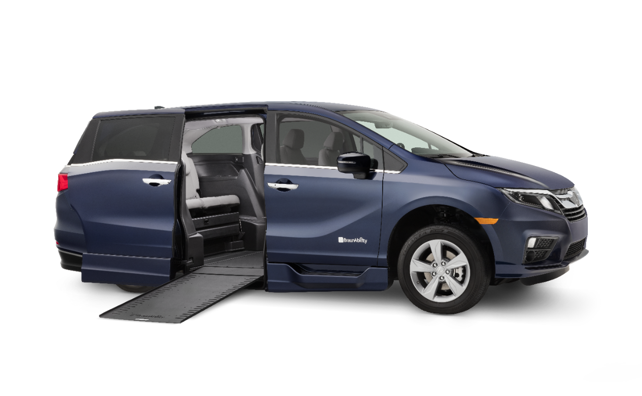 United Access offers new and used Honda wheelchair vans for sale. The BraunAbility Honda Odyssey wheelchair van features a side-entry powered infloor ramp, an expansive interior designed for improved maneuverability, and top of the line safety.