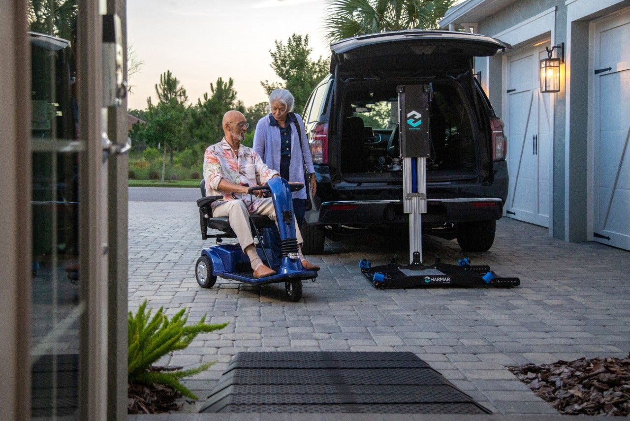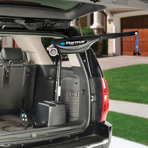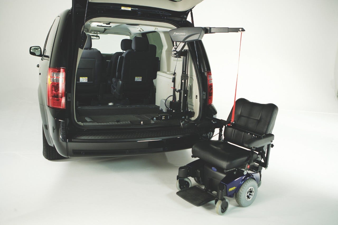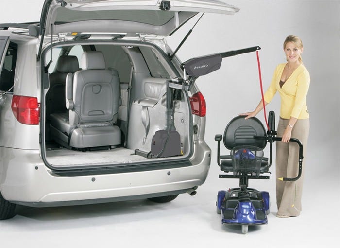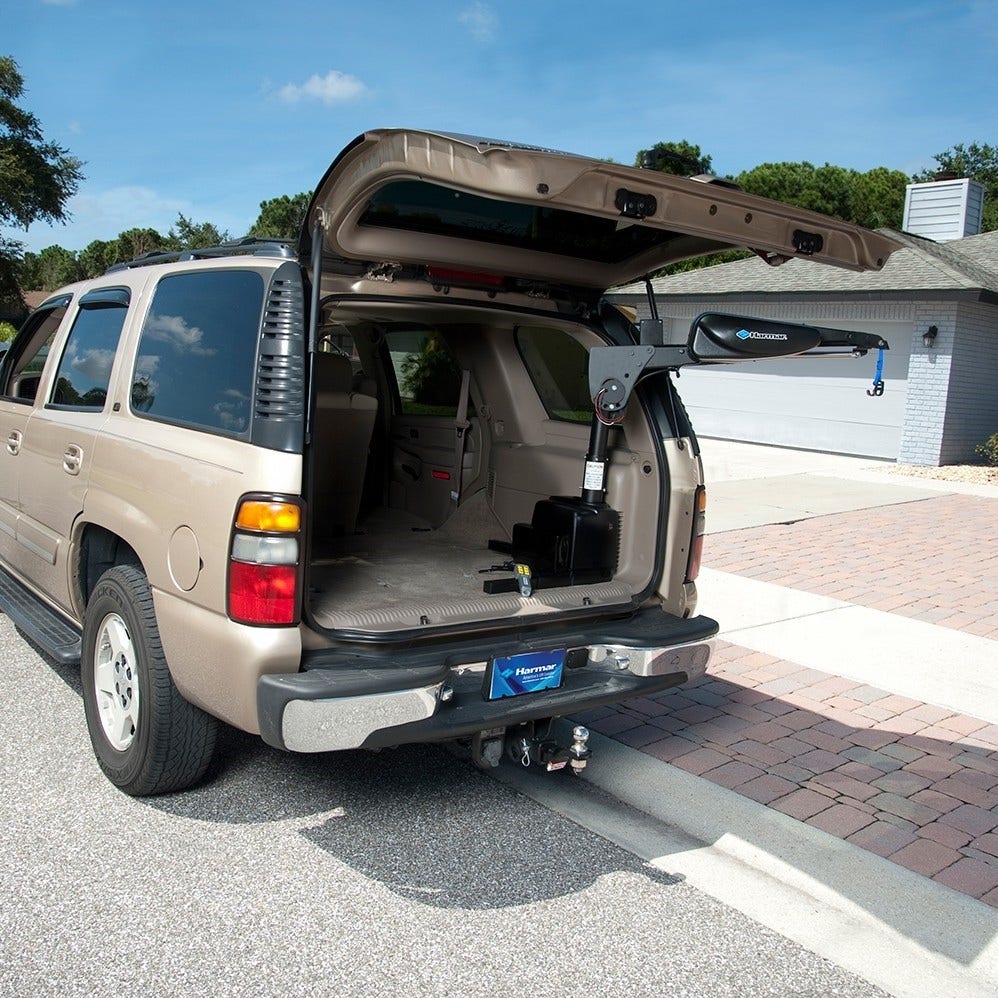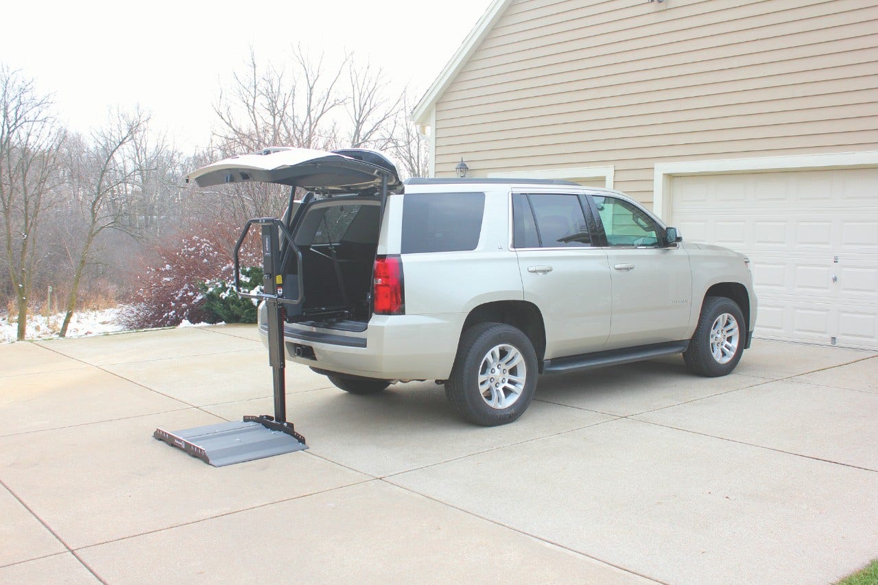 The Armstrong Lift™ Power-Chair, Scooter, Wheelchair lift and scooter lift provides adapted SUV users with the luxury and convenience. This wheelchair or scooter lift, in its folded position, creates 100% interior floor space without having to replace or modify the SUV’s rear compartment doorway. Mobility is now within arm’s reach with this innovative and space-saving personal mobility stowage lift.