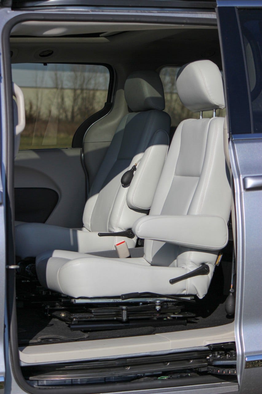 This seating solution is available for installation in the front row of select passenger cars, small CUVs and minivans. The Turny Manual comes with a three-year limited warranty and optional positioning belts.